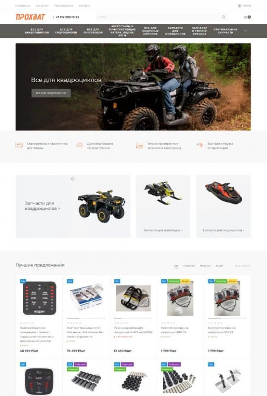 Интернет-магазин Прохват специализируется на продаже фирменных запчастей, масел и аксессуаров для квадроциклов, мотоциклов, снегоходов и прочей техники для активного отдыха. Компания сотрудничает с ведущими отечественными и зарубежными производителями Arctic Cat, BRP, Yamaha, Polaris, Kawasaki. Предлагает широкий ассортимент запчастей в наличии и осуществляет поставки под заказ, является официальным дилером продукции Voevoda.